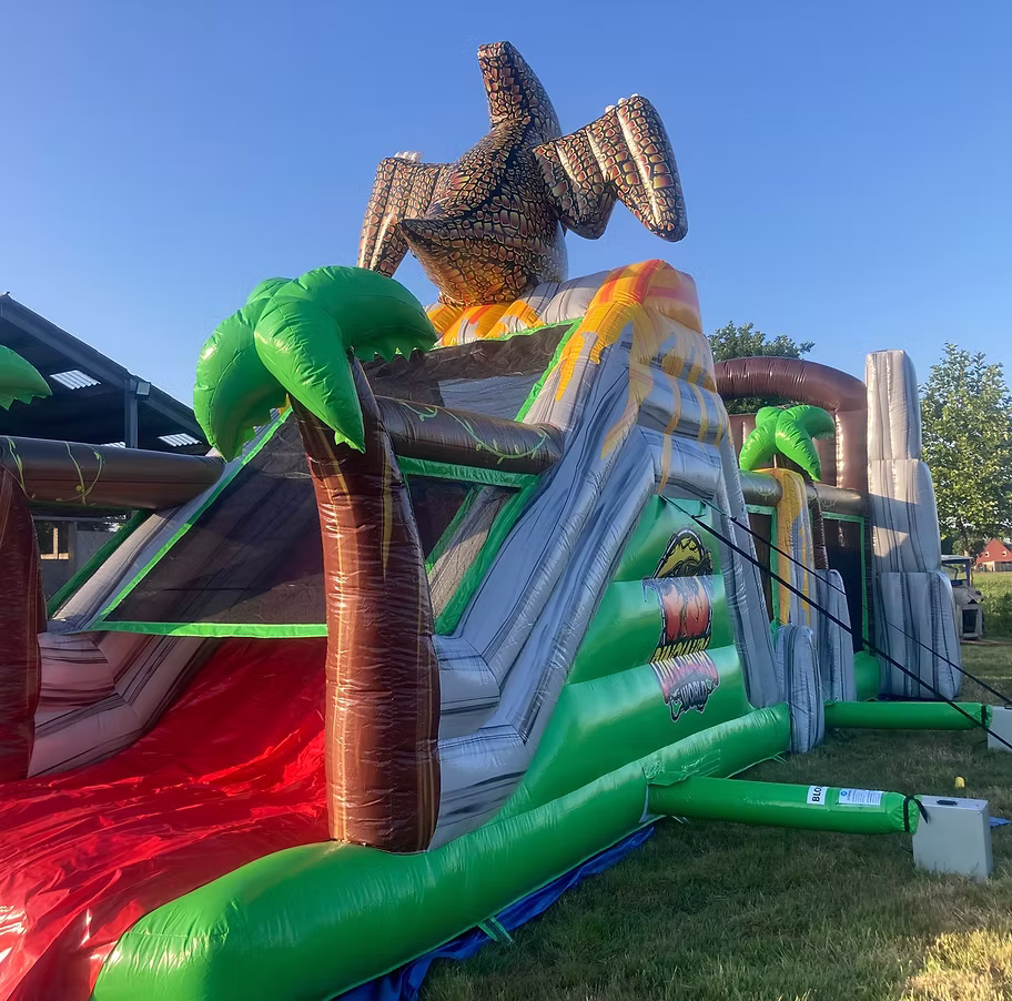 Op zoek naar een opblaasbare attractie die zowel jong als oud in beweging brengt? De 13m stormbaan Jurassic World is jouw antwoord! Deze uitdagende en opwindende attractie heeft 13 meter aan avontuur voor alle leeftijden. Perfect als middelpunt voor elk evenement, van schoolfeesten tot bedrijfsuitjes. Op het opblaasbare hindernisparcours kun je rennen, springen, klimmen en kruipen in een race naar de finish. De Jurassic World thema stormbaan is een gegarandeerde eyecatcher die zorgt voor eindeloos plezier en competitie.